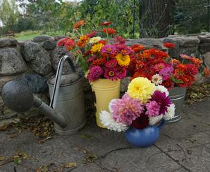 DIY flowers by the pail: $60.00. Do you have a special event that needs some eye-catching flowers? We have pails of blooms available. You do the arranging. I will provide a selection of seasonal flowers in a three gallon pail. The flowers are fresh and natural. Typically ten of each variety. There will be main event show-off flowers , such as dahlias, and sunflowers and supporting cast flowers such as Ammi, Scabiosa and Snapdragons. Also included are greens which help make the flowers pop. I will try to accommodate color preferences as able but cannot guarantee this. Remember I'm growing at nature's whims. This option is for a flexible person who wants a natural, unique look. Pricing for 90 flowers is $60.00. You come to our farm to pick up or we deliver in 20 mile area for an additional $20.00. Please contact me by phone to discuss your order. Leave a message please. I'll get back to you as soon as able. 262-749-8374 or 262 749-8370.
